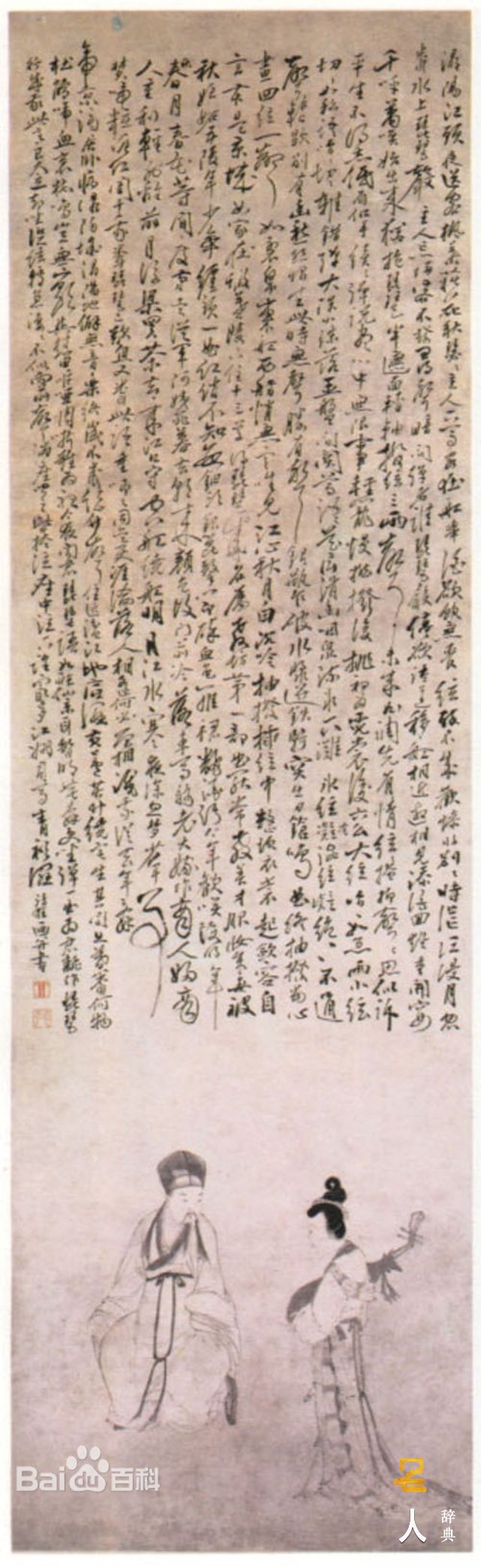 《琵琶行》与《长恨歌》是白居易写得最成功的作品,其艺术表现上的突出特点是抒情因素的强化。与此前的叙事诗相比,这两篇作品虽也用叙述、描写来表现事件,但却把事件简到不能再简,只用一个中心事件和两三个主要人物来结构全篇,诸如颇具戏剧性的马嵬事变,作者寥寥数笔即将之带过,而在最便于抒情的人物心理描写和环境气氛渲染上,则泼墨如雨,务求尽情,即使《琵琶行》这种在乐声摹写和人物遭遇叙述上着墨较多的作品,也是用情把声和事紧紧联结在一起,声随情起,情随事迁,使诗的进程始终伴随着动人的情感力量。除此之外,这两篇作品的抒情性还表现在以精选的意象来营造恰当的氛围、烘托诗歌的意境上。如《长恨歌》中“行宫见月伤心色,夜雨闻铃肠断声”,《琵琶行》中 “枫叶荻花秋瑟瑟”“别时茫茫江浸月”等类诗句,或将凄冷的月色、淅沥的夜雨、断肠的铃声组合成令人销魂的场景,或以瑟瑟作响的枫叶、荻花和茫茫江月构成哀凉孤寂的画面,其中透露的凄楚、感伤、怅惘意绪为诗中人物、事件统统染色,也使读者面对如此意境、氛围而心灵摇荡,不能自已。