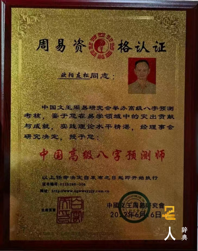 欧阳友松,笔名遠川,男,汉族,1972年2月出生,广东汕头人,现代美术家、玄学家,堂号:宏遠堂。国家一级美术师,中国高级八字预测师。中华国礼艺术家,北京通天彻地艺术中心委员会委员,央广国际文化交流艺术委员会委员。中国诗书画印研究院副院长。