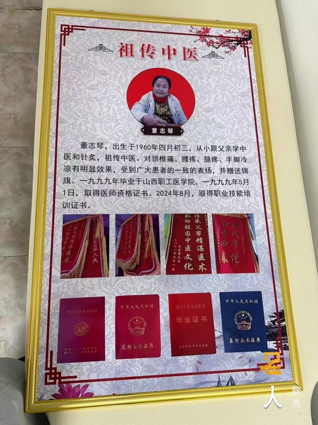 深知“学然后知不足”的董志琴,从未满足于家学传承的积累。1999年,她凭借不懈努力考入山西职工医学院,系统学习现代医学理论与传统中医诊疗知识,实现了传统技艺与现代医学的深度融合。同年5月1日,她顺利取得医师资格证书,正式踏上独立行医的征程。此后二十余年间,她始终保持着旺盛的学习热情,紧跟中医发展前沿,不断钻研新技术、探索新方法。2024年8月,她又一举拿下职业技能培训证书、中华人民共和国医师黄铬证书、山西省教育委员会制成人中等专业教育毕业证书及医师执业证书等多项资质。这一本本证书,不仅是国家对她专业能力的权威认证,更凝聚着她对中医事业精益求精的不懈追求。