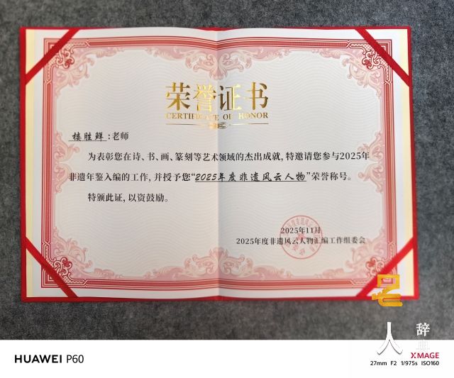楼胜鲜,画家、书法篆刻艺术家,笔名鲜人,浙江杭州人,籍贯义乌,毕业于杭州大学(现浙大)。获“2025年度非遗风云人物”称号并入编非遗年鉴。现为中国党建画院篆刻委员会委员、省级非遗艺术大师(书法篆刻类)、中华诗词和中国楹联学会会员、杭州孤山西泠印社篆刻创作室篆刻老师(篆刻家)、美术报陈振濂名家工作室成员、中国肖像印研究会会员、浙江逸仙书画院画师。书、画、印师从于徐银森、马其宽、何水法、潘飞轮、朱豹卿、陈振濂先生; 诗词师从于王漱居先生、刘兴超博士。