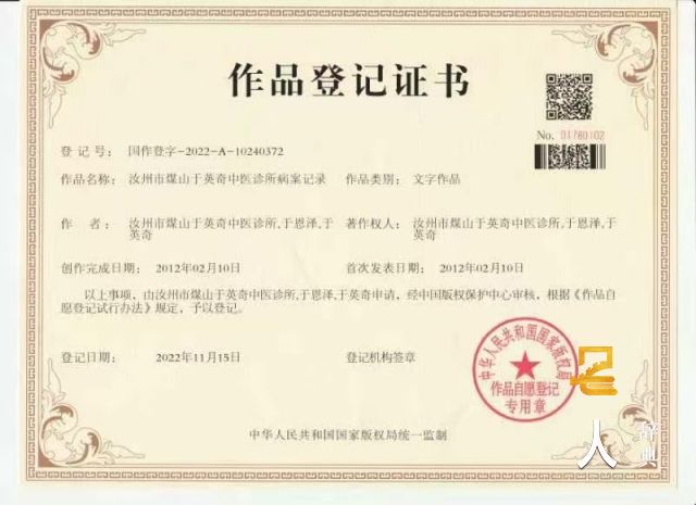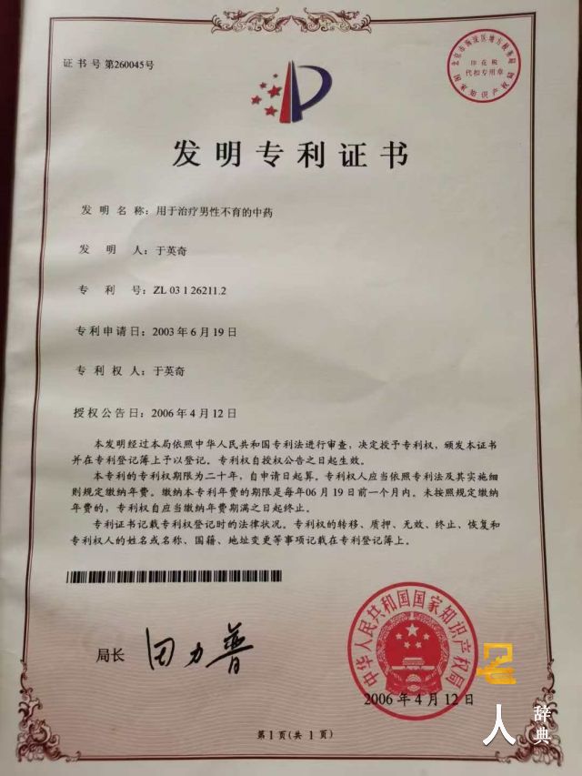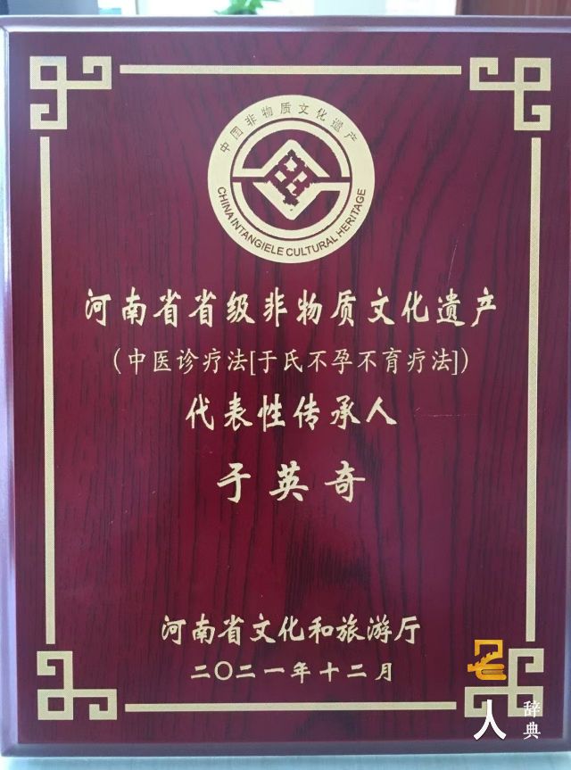 发明两项国家专利: “调经种子方”、“补肾种子方”,填补了世界医学史上不孕不育治疗的一项空白。2021 年被河南省政府认定为非物质文化遗产中医疗法(于氏不孕不育疗法) ,于英奇为该项目的代表性传承人。
