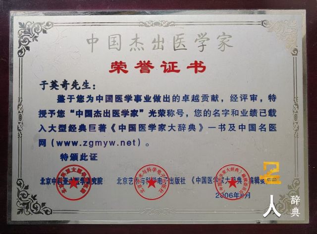 于英奇大夫出身中医世家,自幼酷爱中医学,师从祖父真传并发扬光大。致力钻研男女不育不孕疑难杂症诊疗技法并应用于临床诊治 60 载,医德高尚,医术高超,经验精到,治愈病人遍布国内外。2010 年获中医药事业杰出贡献奖,曾参加中国第三届名医荟萃活动,受到多位国家领导人接见。著书《男女不孕不育诊治荟萃》,由中国中医药出版社出版。《人民日报》、《科技日报》、《健康报》、《中国青年》、《新华每日电讯》、 《香港大公报》等国家权威媒体相继报道,人称“送子观音。”