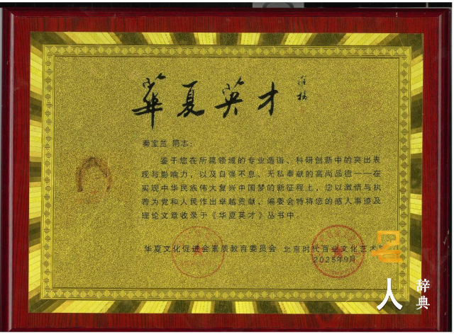 秦宝兰,女,江西省九江市人,扁鹊后裔子孙。现任拙存堂健康产业科技(山西)有限公司董事长,山西魂酒酒业有限公司董事、经理,山西杏花国宾酒业有限公司经理,中国民族医药学会民间医药分会常务理事,2023年获得“新时代非遗文化传播大使”,跟随抗美援朝开国元勋的父亲退伍复员转业落户在山西省太原市,自幼跟随父亲、母亲学习中医中药,研究中医中药四十余年。