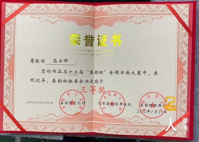 2023年荣获中国教育电视台泼墨中华情组委会2023年聚焦两会,德艺双馨“书画名家荣誉称号”、“作品最具收藏价值荣誉称号”。