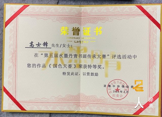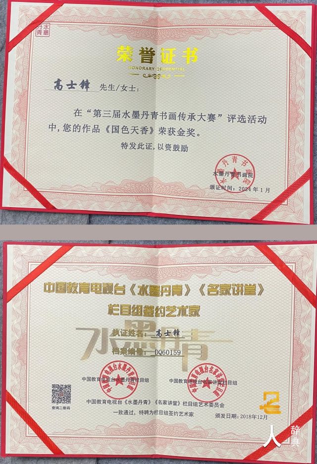 2024年作品《国色天香》在中国教育电视台水墨丹青书画院举办的“第三界水墨丹青书画传承大赛”中荣获金奖。