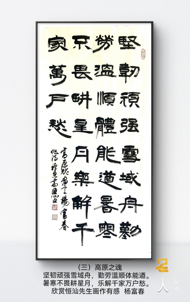 2020年应邀为《中华英才》 、河西学院、兰州新区舟曲中学、 苏州甘肃商会、江南和董会、丹霞文创基地、等多家单位和个人题写匾牌并创作书画作品200余幅。