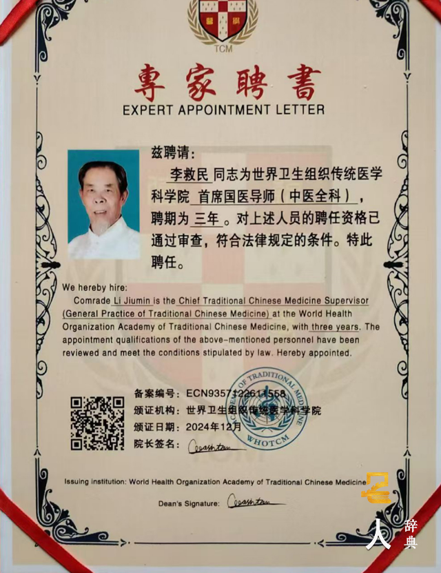 我是九代中草药名医世家传承医师李救民(曾用名李锡清),出生于一九四三年二月,文化程度中专,共产党员,十二岁开始跟随祖父学医十八年,祖父去世后我正是三十岁患上了鼻咽癌到肿瘤医院检查叫留医放化疗。按照祖父传授下来的中医知识,及本人创造方配合,按中医治病理论依据要以阴阳为理论基础,将人体看成是气、形、神的统一体,通过“望、闻、问、切”四诊合参的方法探求病因、病性、病变进行分析病机及人体五脏、六腑、经络、关节、气血、津液的变化判断邪、正、消、长、进而得出病因名,归纳出证型,以辨证治疗原则,制定“汗、呕、下、和、温、清、补、消”等治法,使用造物主创造的中草药的功效施证办法治疗才能攻破肿瘤。把中医知识运用到自己身上实践,经过三个多月中草药治疗终于把我颈项的肿瘤消除无踪,达到根治。从此我走上了行医道路,决心立志攻破世界绝症一肿瘤而奋斗终身!