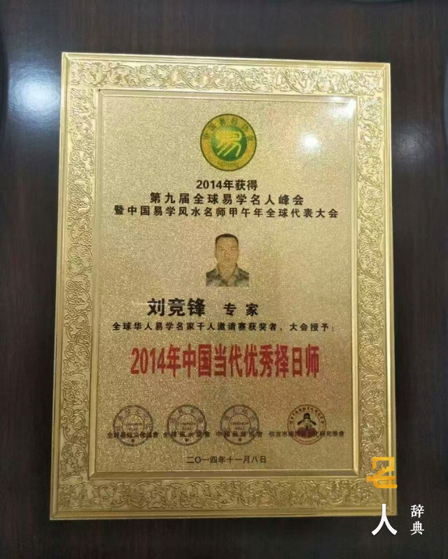 2014年刘竞锋大师在全球华人易学名家千人邀请赛上一举夺得“中国当代杰出择日名师”殊荣。