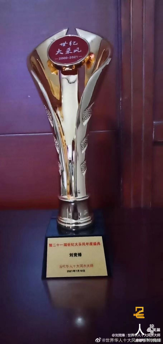 刘竞锋大师生于刘伯温祖传国师风水世家,著名周易研究家、预测学家、风水名师、择日名师、姓名学家、理学名家、一代道法宗、当代华人十大风水大师、世界堪舆风水布局泰斗、世界阴阳道法风水泰斗、当代三魂七魄命医风水泰斗、世界华人易学风水名师文化协会会长、中国周易名家学会名誉会长、新加坡世界易道终身成就奖风水大师,2021年7月18日至22日,刘竞锋大师应邀荣耀出席在中央电视台星光影视基地举行的第二十一届世纪大采风年度盛典暨年度人物电视总结表彰大会,并接受多家电视媒体现场直播采访报道。会场地址:中央电视台星光大道影视基地,刘竞锋大师荣膺“当代华人十大风水大师”“当代阴阳道法风水泰斗”称号。2022年3月,鉴于刘竞锋大师在易学风水行业领域内成就卓越突出,具有泰斗级人物代表性,经华人网组委会审核通过,特颁发“中国梦时代人物”奖杯。