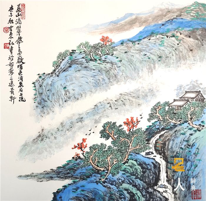 天趣映人意,丹青解诗篇。云大群用自己的丹青修养和天意作趣的创作智慧,在宣纸上不断经营着令人切情适意的山水佳在。或是岩崖云霄,或是秋韵柔亭,或是百尺悬瀑,或是板桥寒泉,都经苍润原则设色用墨,以达雅淡秀馨的表现力,天趣人意融为一体,空旷寂静陶冶人心,是谓当世青绿山水的领军人物!