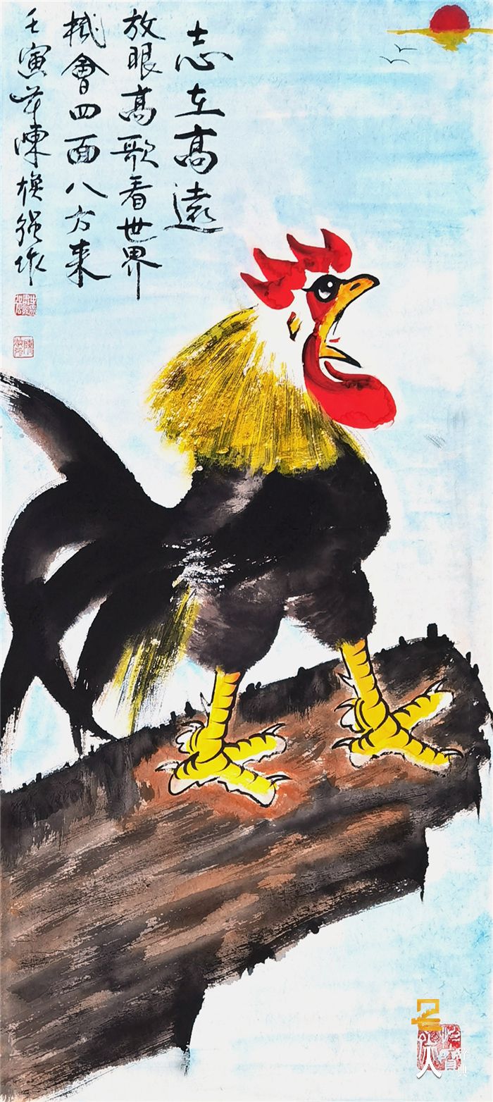 旨在促进家庭和谐、夫妻恩爱、增强团队凝聚力、激励上志、促进世界和平……特别突出以“画鸡”并配以自己创作的独特诗词对子,达到诗情画意。作品除了传承中国画的写意传神、墨韵和线条等,还结合雅俗共赏,让人人赏心悦目。以传播“和谐思想”为社会作贡献!